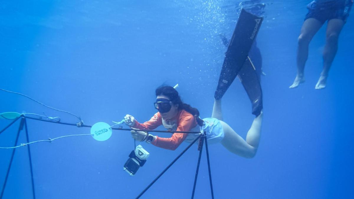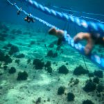 Tres metros de profundidad, dirigido por el apneist Sofía Gómez y el biólogo Marino Anthony Combatt, se unen a cuatro cuerdas suspendidas por fragmentos de coral. Cada nodo se aprieta con una estructura de hierro, como si con cada uno de ellos volviera al ecosistema. «Estas estructuras flotantes que ayudamos a instalar serán las primeras camas del jardín de infantes de coral. Cada fragmento que establecemos intentos de revivir algo que parece morir», dice Anthony, fundador de Blue Restoreers.