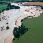 Foto de helicóptero que muestra un deslizamiento de tierra tras la erupción del volcán Nevado del Ruiz.