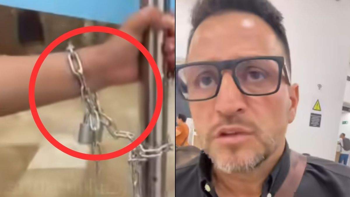 El hecho se conoció luego de que se difundieran en las redes sociales varios videos que lo demuestran. tres personas encadenadas en una sucursal de Bancolombia.