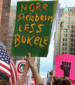 En Chicago, la cuna de la jornada laboral por la lucha de las ocho horas, donde el resto del mundo celebra a los mártires de ese movimiento, se llevaron a cabo marchas con decenas de miles de asistentes, incluyendo contingentes significativos de mexicanos, según destacaron los participantes. Entre los mensajes de las pancartas de los sindicatos y los de Michoacán, uno decía en inglés: «Más Sheinbaum, menos Bukle».