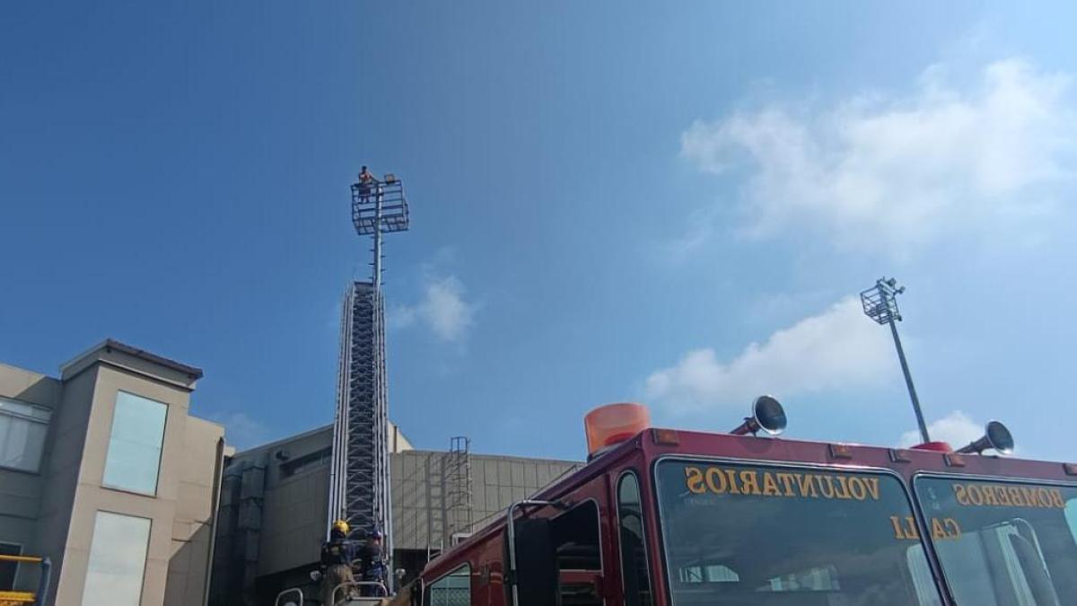 Los bomberos actúan rápida y eficientemente ante situaciones de emergencia. El hombre trepó a la estructura desde el aeropuerto de Alfonso Bonilla. Foto:Brigada de fuego de Cali