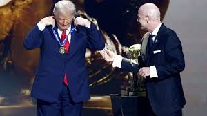 12-06-25. El presidente de Estados Unidos, Donald Trump, recibió el viernes el primer Premio de la Paz de la FIFA por su «acción extraordinaria» al intentar lograr la paz en lugares como Gaza, el Sudeste Asiático, África y Ucrania, según el máximo organismo del fútbol. La FIFA entregó al presidente este nuevo galardón durante el acto organizado en torno al sorteo del Mundial masculino de 2026, que alberga el Kennedy Center, el centro cultural nacional estadounidense, donado por Trump a la FIFA para la ocasión.